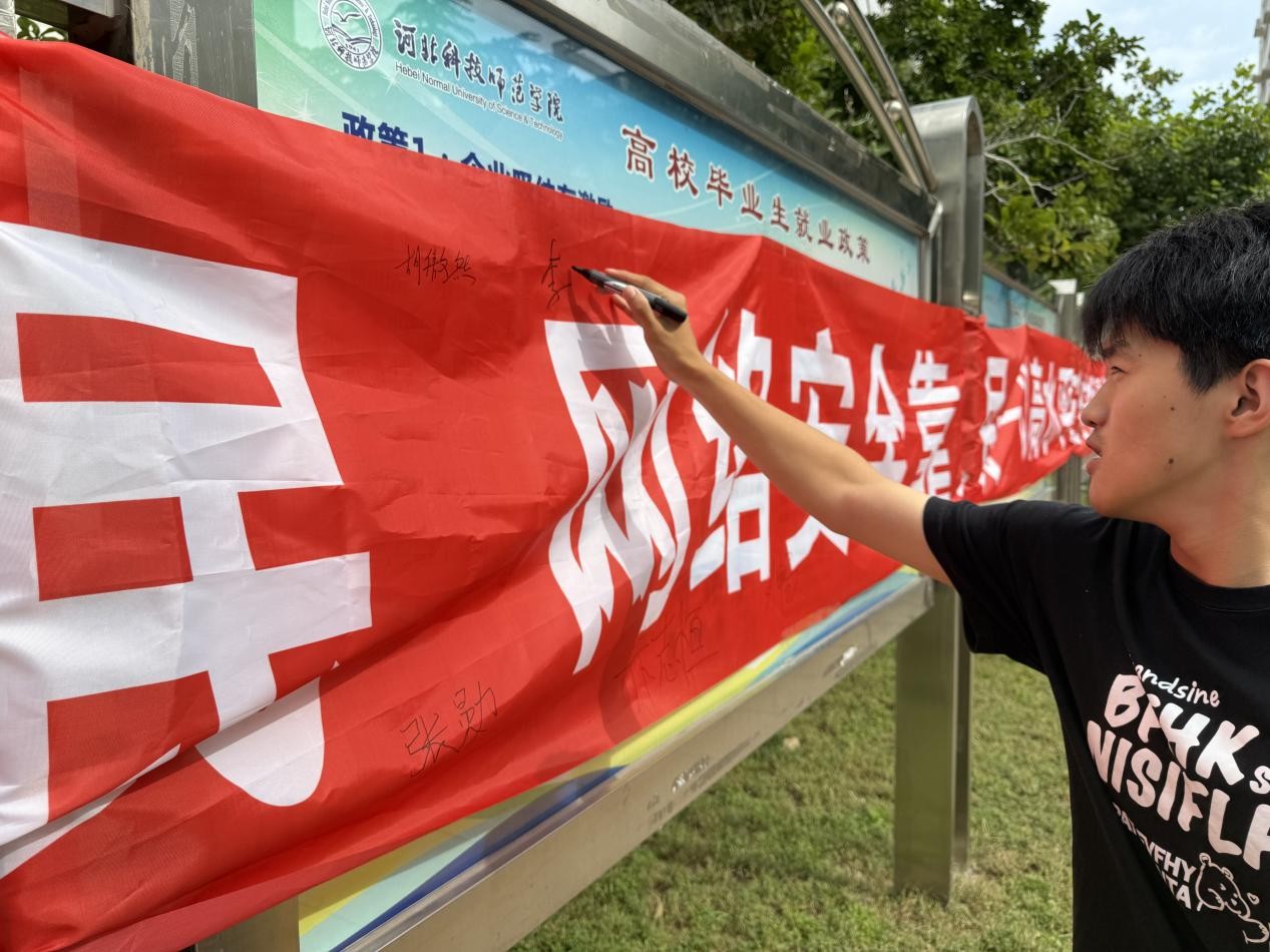 活动现场,鲜红的主题横幅醒目悬挂,工作人员向过往师生讲解电信诈骗防范、个人信息保护、校园网安全使用等实用内容,宣传网络安全的重要性。随后,师生们热情上前有序上前,在横幅上郑重签下姓名,以签名践行承诺,用一笔一划的行动表明决心,现场吸引众多师生参与,充满庄重而热烈的氛围。此外,我院还邀请到了燕园派出所王宝军警官现场普法,以案例为戒,让师生们更切实体会了网络的利弊和网络安全的重要性。
